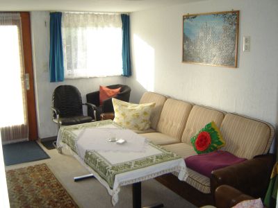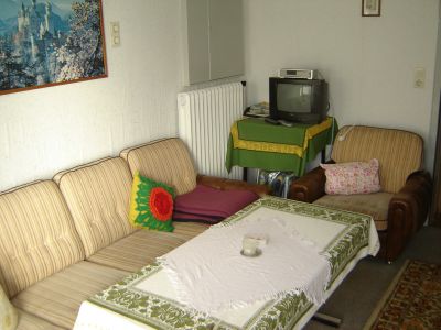 Haus Schramm Beschreibung: Bauernhaus Anbau Wohnküche, Dusche, WC, Wohnzimmer, 2 Doppelzimmer (4 Personen), Erdgeschoß Wohnzimmer Küche mit Eßzimmer Schlafzimmer |