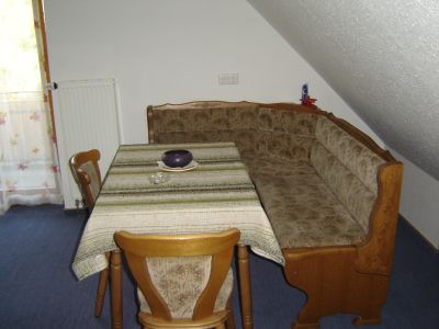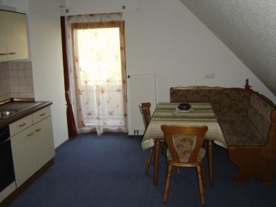 Haus Schramm Beschreibung: Küche mit Wohn- und Esszimmer, Bad mit Dusche und WC, großer Balkon, 1 Doppelzimmer, 1 Zweibettlzimmer (mit zwei einzeln Betten), Grillplatz im Garten |
